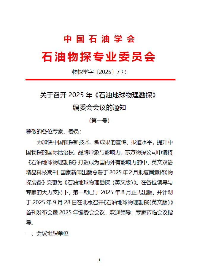 关于召开2025年《石油地球物理勘探》 编委会会议的通知