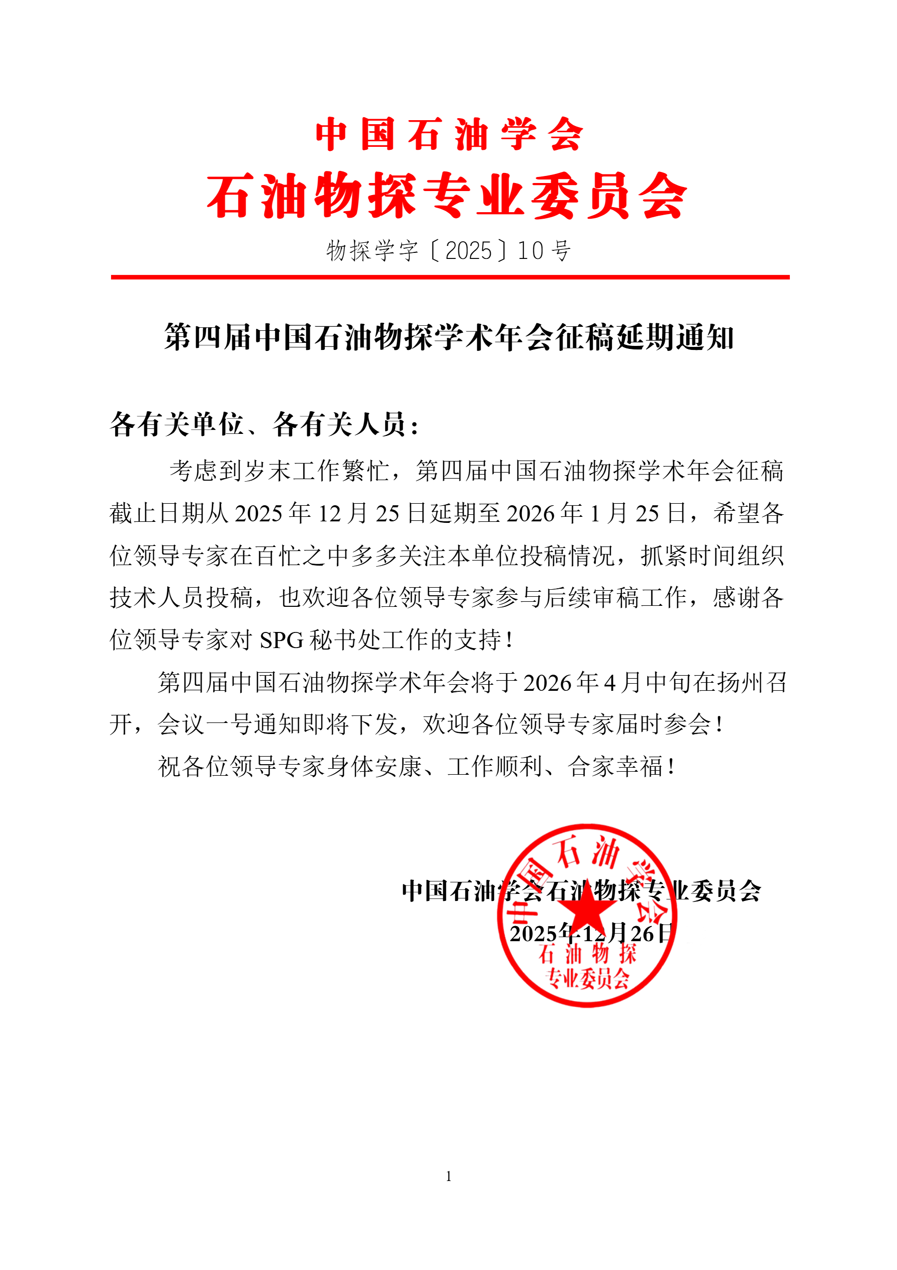 第四届中国石油物探学术年会征文延期通知